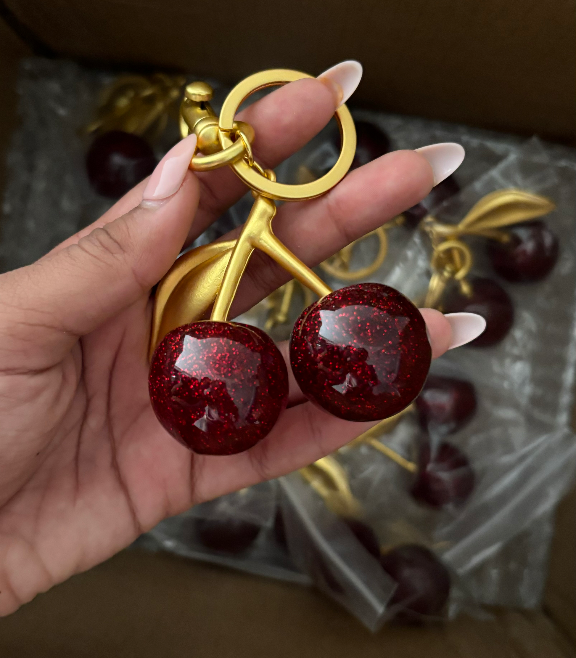 Add a pop of color to your accessories with our Cherry Charm keychain! Individually handcrafted from durable material, this cherry-shaped keychain is perfect for adding a touch of fun to your bag. The perfect blend of style and functionality, it's a must-have for any bag charm lover.